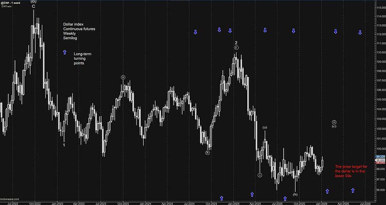 The time is now upon us. For years, I have been forecasting a crash in the dollar. So far, the dollar has followed my predictions. Many heavy hitters are predicting a bull breakout in the dollar. I think we have completed the first of fives waves down and will now rally over some weeks in a wave 2. Then, if I am right, will come a mighty wave 3 down. We shall see.